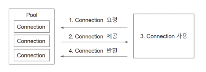 데이터 연동과정에서 일반적인 연동과정은 웹 어플리케이션이 필요할 때마다 데이터베이스에 연결하여 작업하는 방식이다. 그런데 이런 식으로 필요할 때마다 연동해서 작업할 경우 데이터베이스 연결에 시간이 많이 걸린다는 문제가 있다. 이 문제를 해결하기 위해 현재는 웹 어플리케이션이 실행됨과 동시에 연동할 데이터베이스와의 연결을 미리 설정해 두고, 필요할 때마다 미리 연결해 놓은 상태를 이용해 빠르게 데이터베이스와 연동하여 작업을 한다. 이 작업을 Connection Pool이라고 한다.