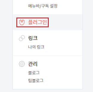 우선 티스토리 관리창에서 플러그인을 클릭해서 들어가 줍니다.