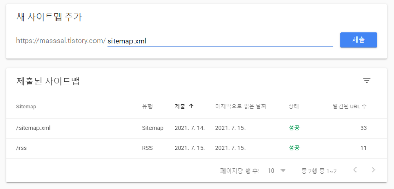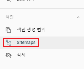 추가적으로 좌측에 있는 'Sitemaps'를 눌러 사이트맵 제출을 하도록 하겠습니다. 제출을 하게 되면 구글이 티스토리를 더욱 자세히 분석할 수 있게 설정하는 것입니다.