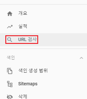 마지막으로 URL 색인 등록을 하겠습니다. 다시 좌측 사이드바에서 URL 검사를 눌러줍니다.