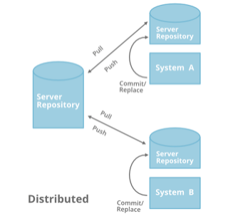 DVSC에서는 클라이언트가 파일들의 마지막 스냅샷을 가져오는 대신 저장소를 통째로 복제한다. 이는 서버에 문제가 생기면 모든 버전고나리 작업이 ALL STOP되는 CVCS와 달리, 클라이언트의 내용을 서버에 복사하면 서버를 복구 할 수 있다. 체크아웃 할 때마다 전체 백업한다.