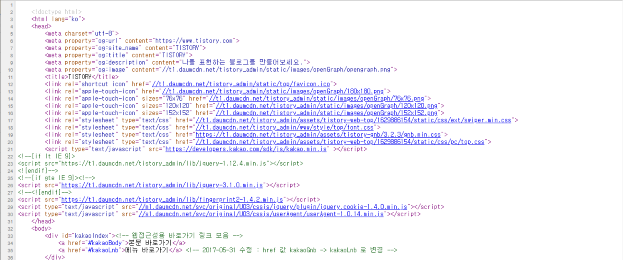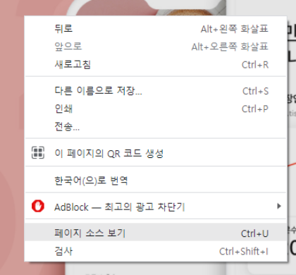 HTML로 짜여진 코드를 보고 싶으면 위와 같이 아무 웹페이지를 열고 우클릭을 해서 페이지소스 보기를 하면