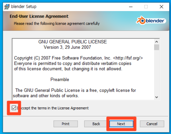5. 라이센스 동의서에 동의 후 다음으로 진행해 줍니다.