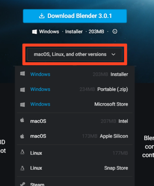2. 블렌더 홈페이지로 이동하였다면 빨간 박스로 표시되어 있는 다운로드 버튼을 누릅니다.