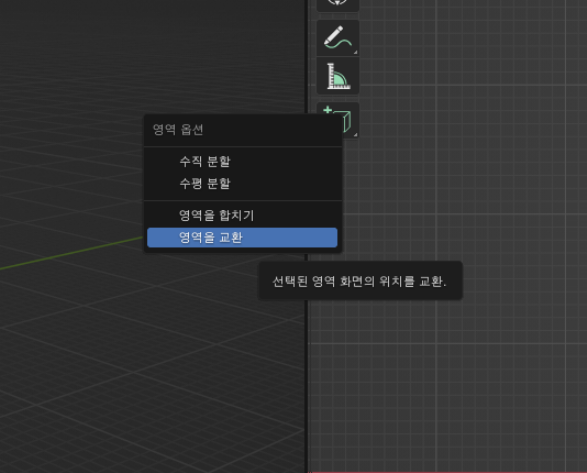 메뉴창에서 영역을 교환을 누르면 경게의 인접한 영역을 서로 바꿔줍니다.