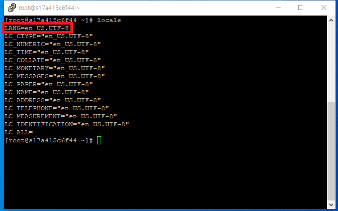 1. 서버의 인코딩 정보를 확인하는 locale명령어를 실행합니다.